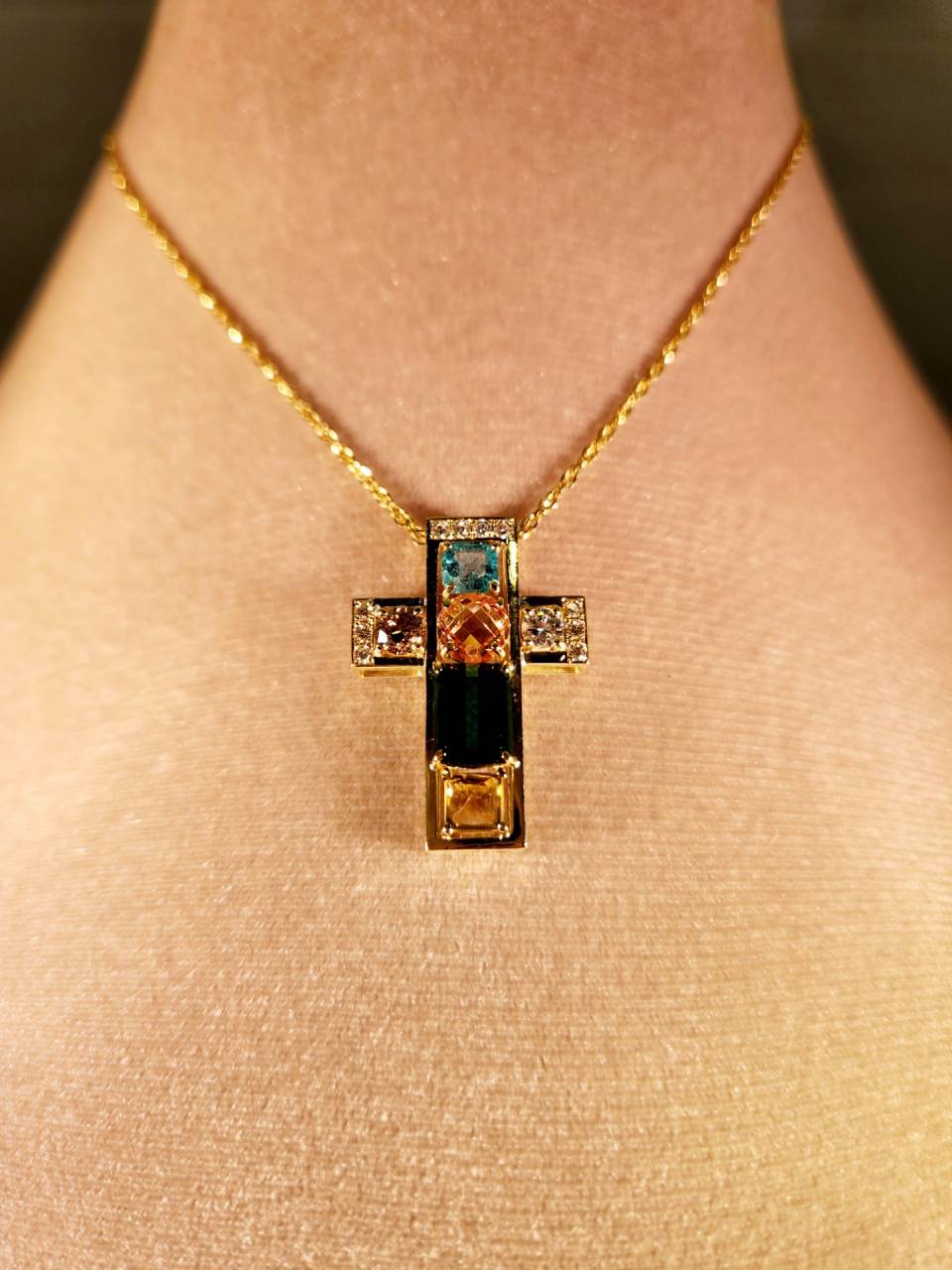 様々な石を組み合わせてクロスペンダントにジュエリーリフォーム