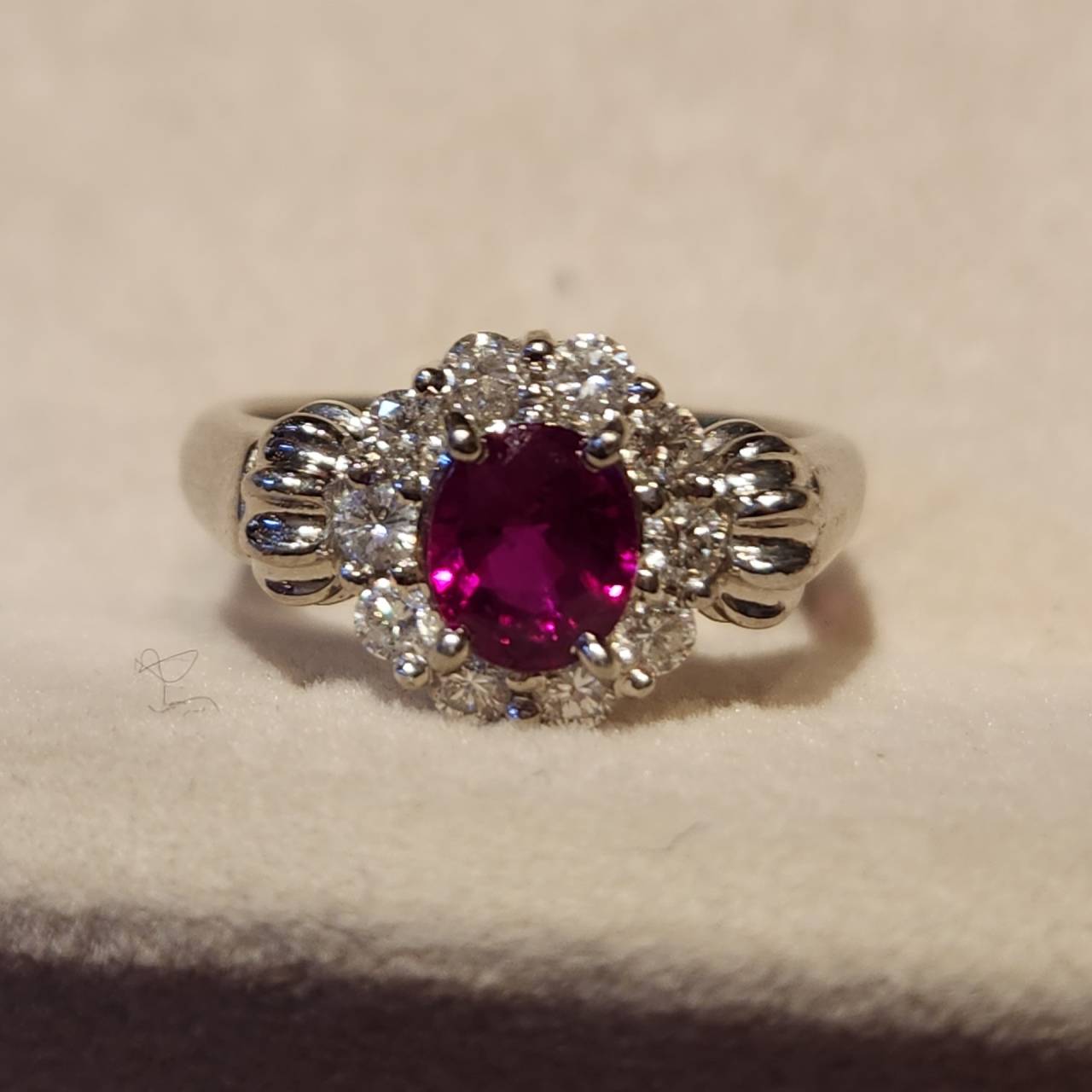 お持ちのお客様からご相談、ご友人が以前当店でリフォームされたのをご覧いただきご自身のリングもこんなに使い易くなるのなら!と綺麗なルビーリングを持ち込まれました。中石や周りのメレダイヤは全て外し地金のみ下取り致しました。