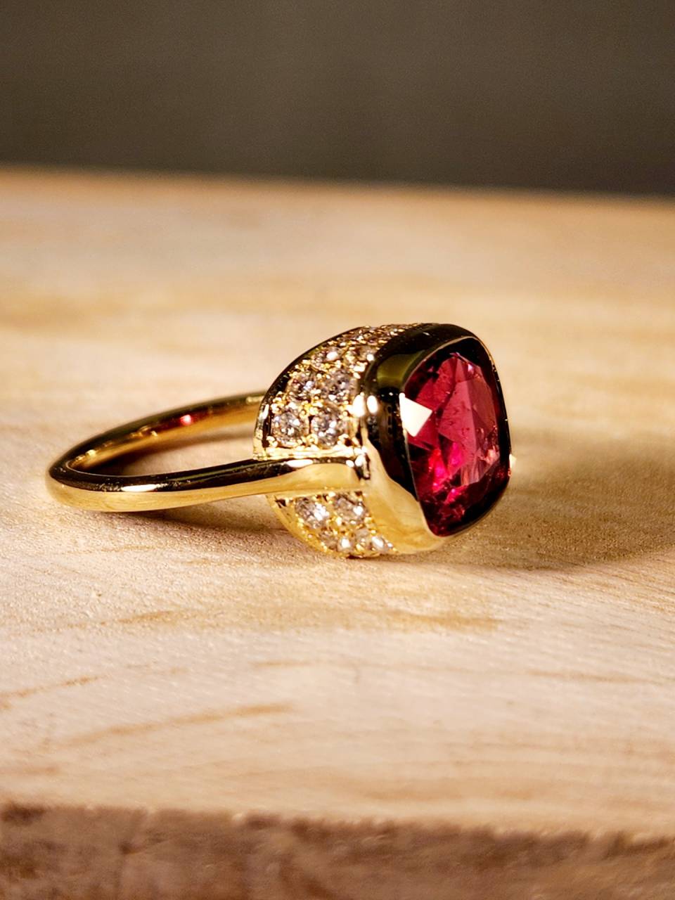 今、流行のピンクゴールドも赤い石とぴったりです。