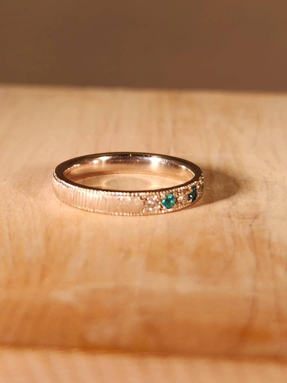 石は地金にしっかり埋め込んだ彫り留めです。
