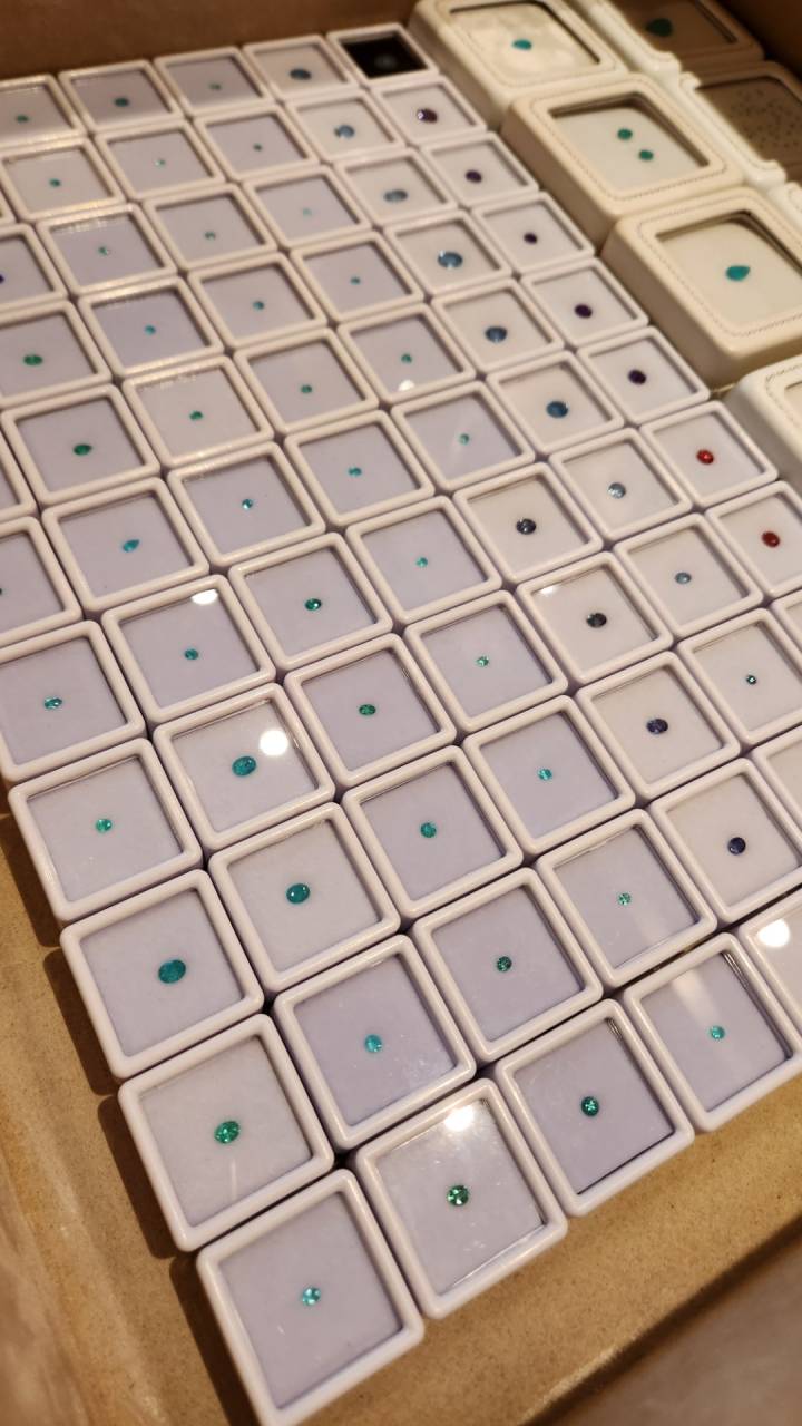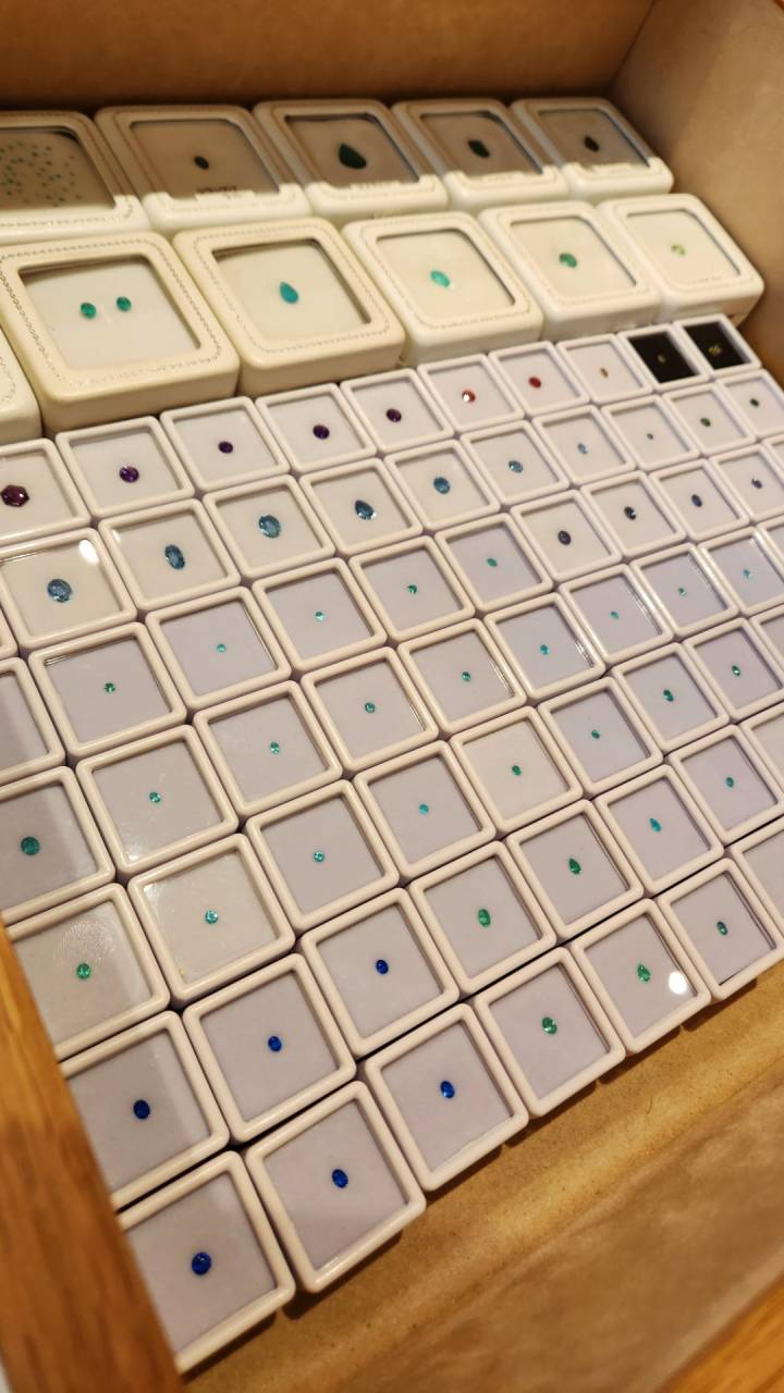大中小の様々な大きさのパライバやアウインナイト等のルースが大変充実しています。すべてブラジルバターリャ産でビビットなブルーグリーンが特徴です。価格は小粒のもので25.000~140.000と大変お求め安くなっています。加工のご相談もその場で出来ますので是非ご来店ください
