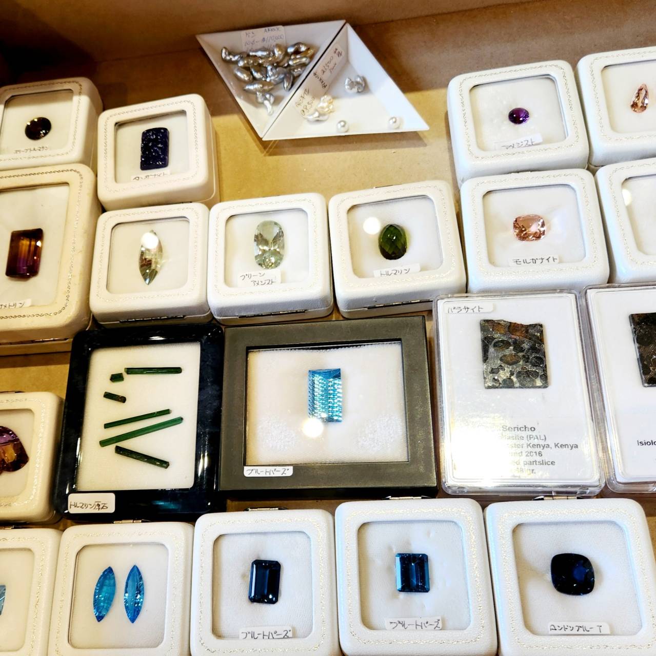 画像の中には大きめの石も見当たりますがこちらはコニャックシトリン 水晶系の石ですが現在この琥珀色の美しい色合いは残念ながら殆ど採れなくなりました。現地ではトパーズリオグランデと呼ばれていますがインペリアルの仲間ではなく水晶系シトリンの仲間です。