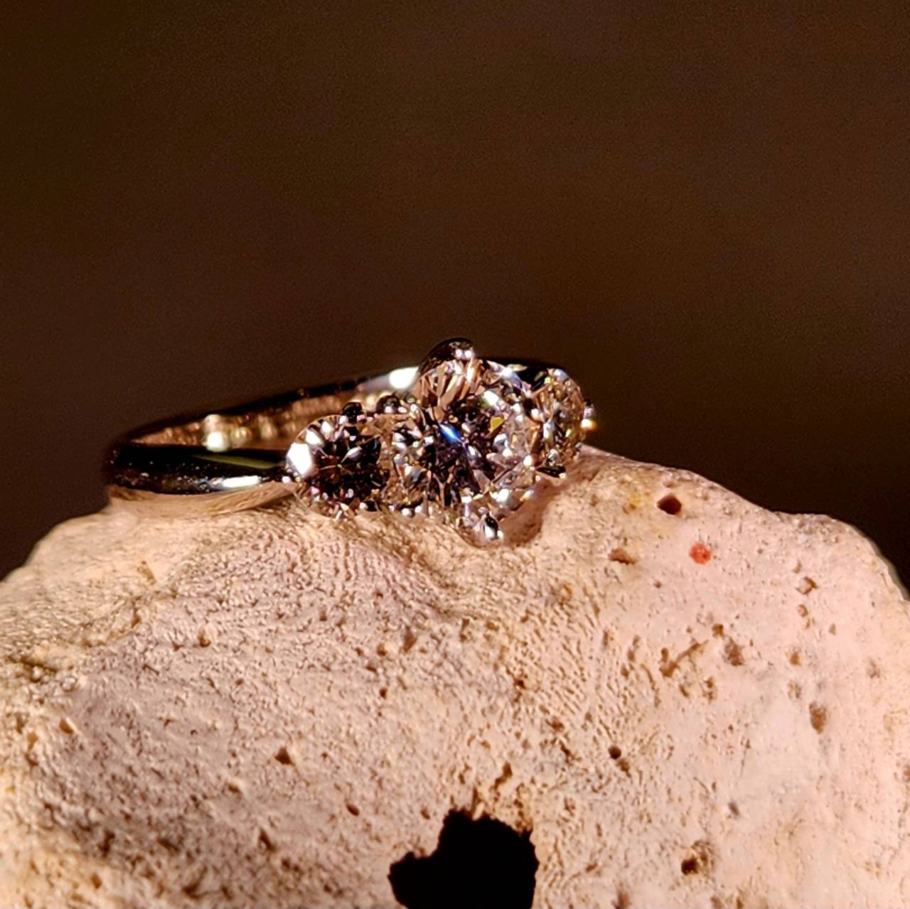 今回はオーソドックスなダイヤ立て爪を持ち込まれたお客様。一般的にティファニータイプと呼ばれていますがご結婚後40年近くも経ったことからリフォームがご希望です。両サイドに大粒のダイヤを2点足すという事で特に傷けの少ない綺麗なペアをご用意0.32ctほどあります。かなりの迫力です。