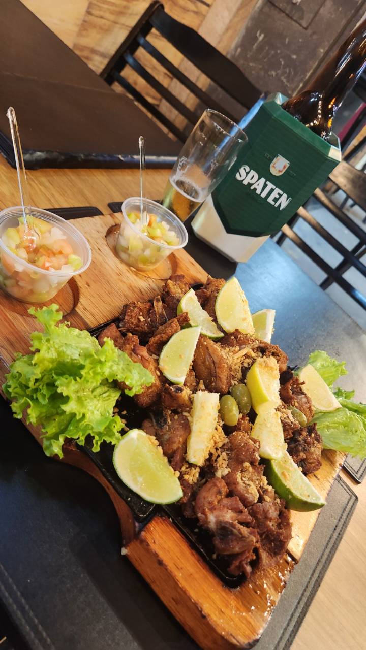 事務所近くに最近出来たポピュラーなバルは夜はブラジリアン居酒屋に?写真はフライドチキン?の様なおつまみ(フランゴパサリーニョ)一人前ですが食べきれずにお持ち帰りしました。友人のヘナットバンザイ君が近くのアルゼンチン牛のグリルレストランに案内してくれました。柔らかい赤身肉はとてもジューシーでした。