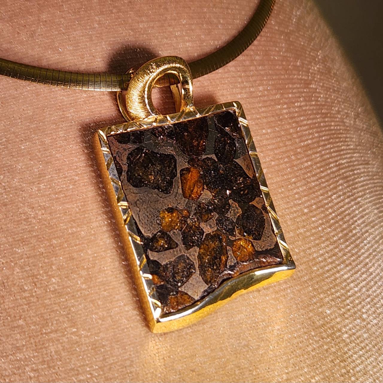 鋼鉄の隕石の中にペリドットの成分がマーブル状に混入した状態の物です。